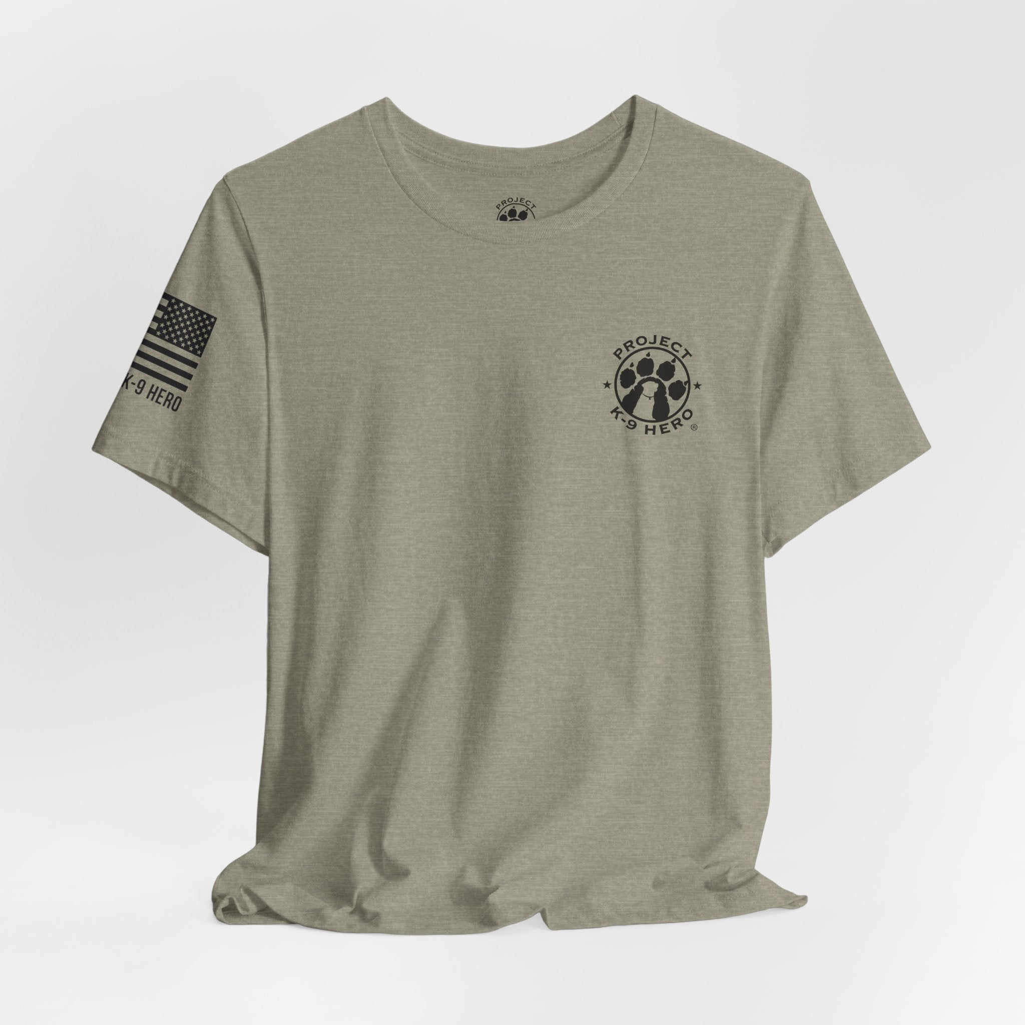 This exclusive T-shirt design honors MWD Reno’s service as a dual-purpose patrol and explosive detection dog in the U.S. Military. At just four years old, Reno was forced into early medical retirement due to a severe skin condition, and was facing euthanasia, until Project K-9 Hero stepped in.