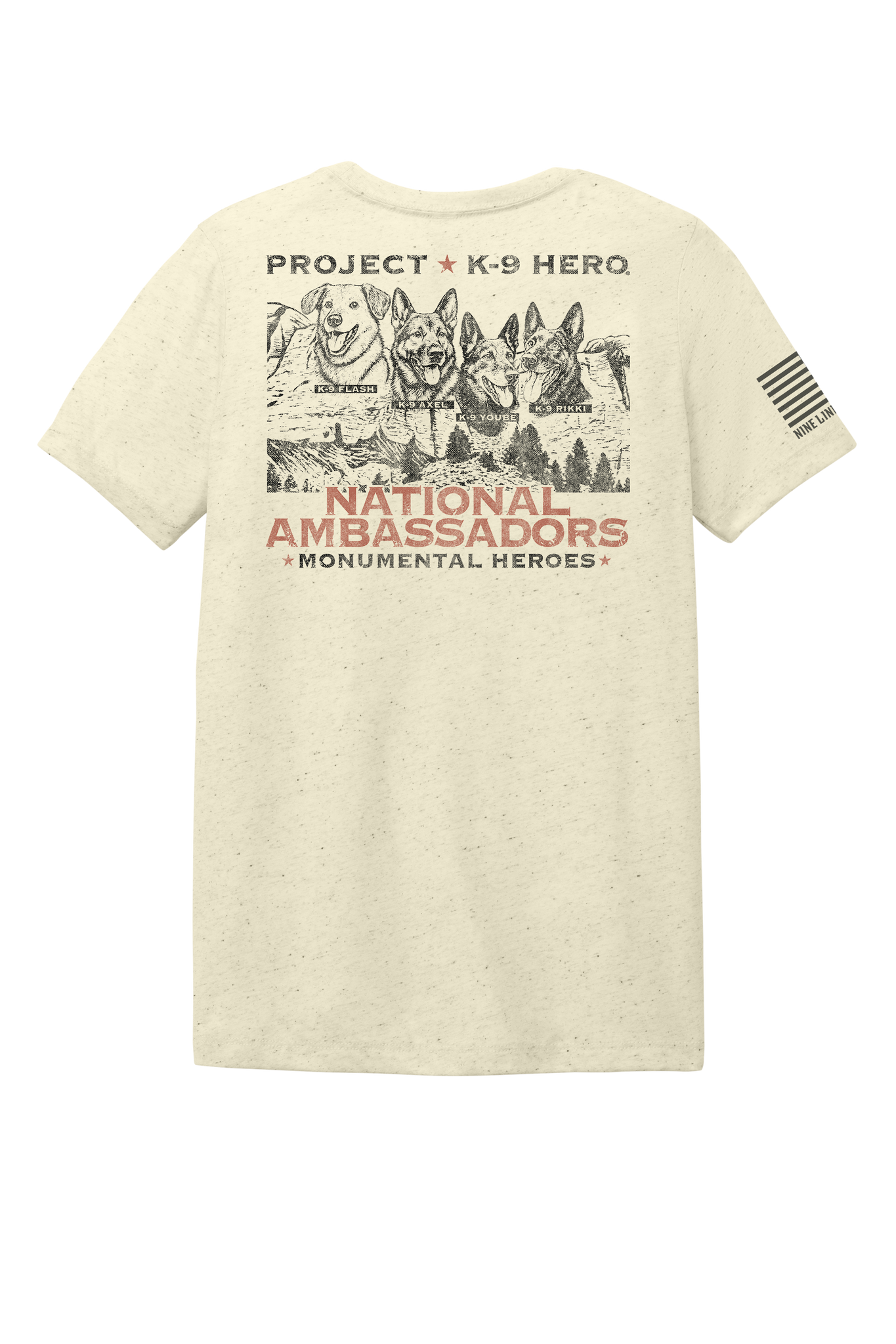 Honor the extraordinary K-9 Heroes who have become the very face of Project K-9 Hero’s mission. Inspired by the iconic Mount Rushmore monument, this Monumental Heroes design reimagines greatness, not in stone, but in the steadfast loyalty, courage, and service of four incredible dogs: K-9 Flash, K-9 Axel, K-9 Yoube, and K-9 Rikki.