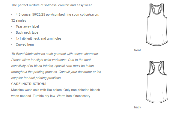 3.8 oz. Triblend (50% poly / 25% cotton / 25% rayon)