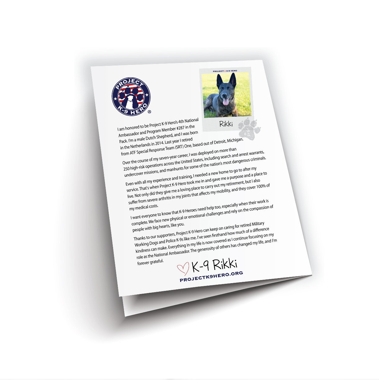 Each purchase helps support the mission of Project K-9 Hero, providing medical care, food, and housing for retired Police K-9s and Military Working Dogs across America.