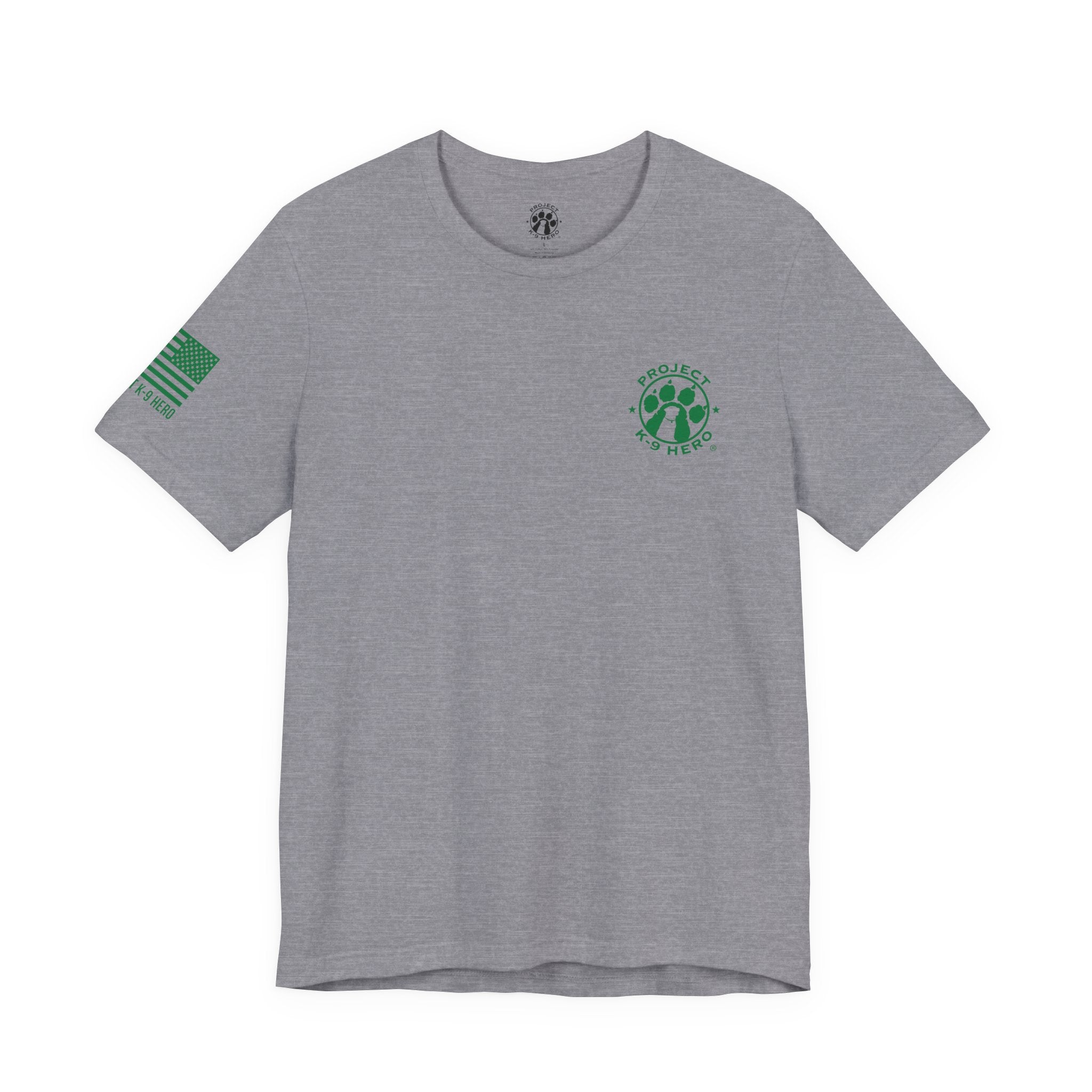 Celebrate K-9 HENRY, PK9H Member #269, with his very own shirt! Available in Heather Dust and Heather Sorm color variations.We at Project K-9 Hero are extremely honored to welcome our first-ever Peer Support K-9 to the program as pack member #269! K-9 “Henry,” retired from the Orange County Sheriff's Department, CA! K-9 Henry was the first-ever Peer Support Working Dog in his agency, and has left a positive long-lasting impact on thousands of first responders! K-9 Henry, first certified as a therapy dog in 2015, then a Crisis Response Canine in 2016, and finally a Peer Support K-9 in 2017. K-9 Henry has answered over 883 calls for service during his six year career. He has responded to major crises such as fires, earthquakes, floods, shootings, plane crashes, and more. Some notable instances include the Tubbs Fire, the Thomas Fire, the Paradise Fire, the Montecito Mudslides, Hurricane Harvey, the Las Vegas Shooting, and the Yorba Linda Plane Crash. Peer Support is focused on assisting first responders dealing with traumatic incidents, and Henry's impact goes even further, extending comfort to victims of tragedies by attending events like candlelight vigils to help bring solace to those affected by crisis.Now retired, K-9 Henry is currently receiving treatment for severe arthritis in his hips and back legs. He is currently on a multitude of medications and supplements that costs hundreds of dollars a month. As the 269th Program Member, K-9 Henry will have all of his veterinary office visits, consultations, surgeries, emergency needs, medicines, and prescription foods paid for at 100% for the rest of his life by Project K-9 Hero.K-9 Henry's journey is not just a story of service; it's a testament to the evolving roles of canines in supporting the emotional well-being of those who serve and protect our communities. As pioneers in this field, Henry and his handler have paved the way for the recognition and care of Peer Support Working Dogs, acknowledging their pivotal role in maintaining the mental health of our nation’s First Responder Heroes.We as an organization couldn’t be any more proud to have this Hero as our first-ever Peer Support K-9!