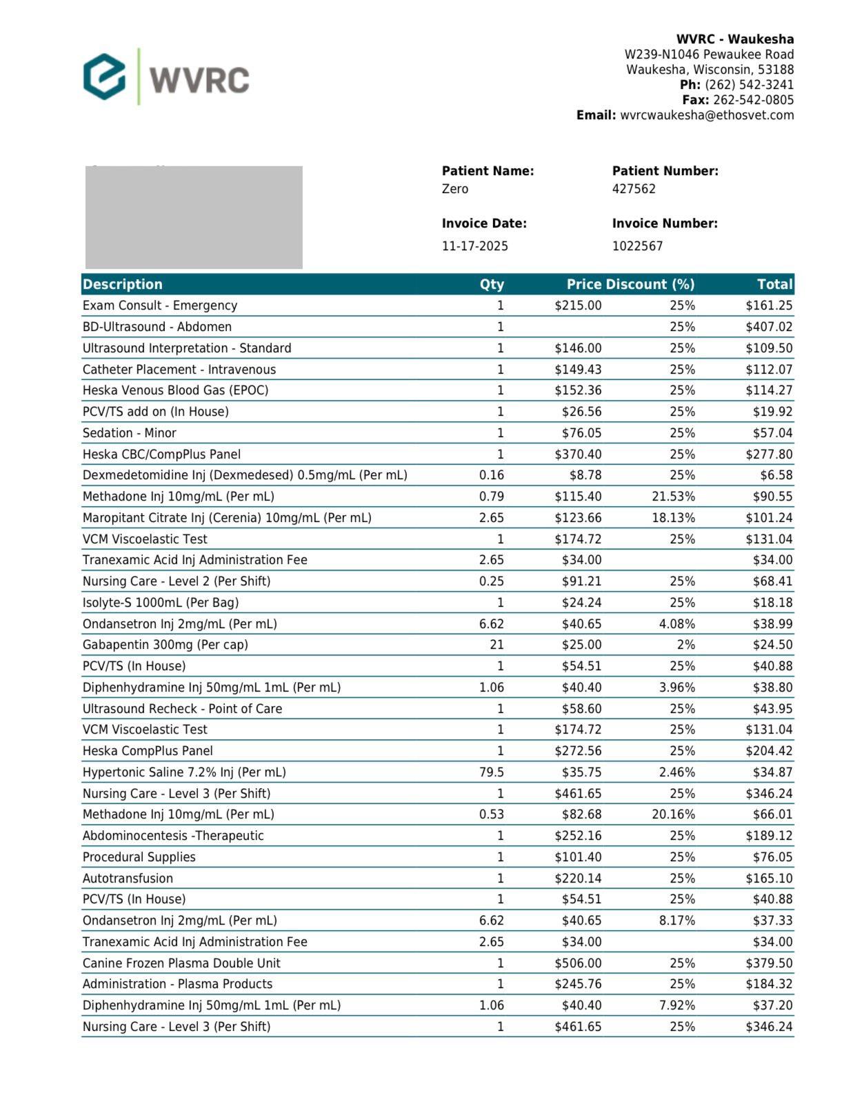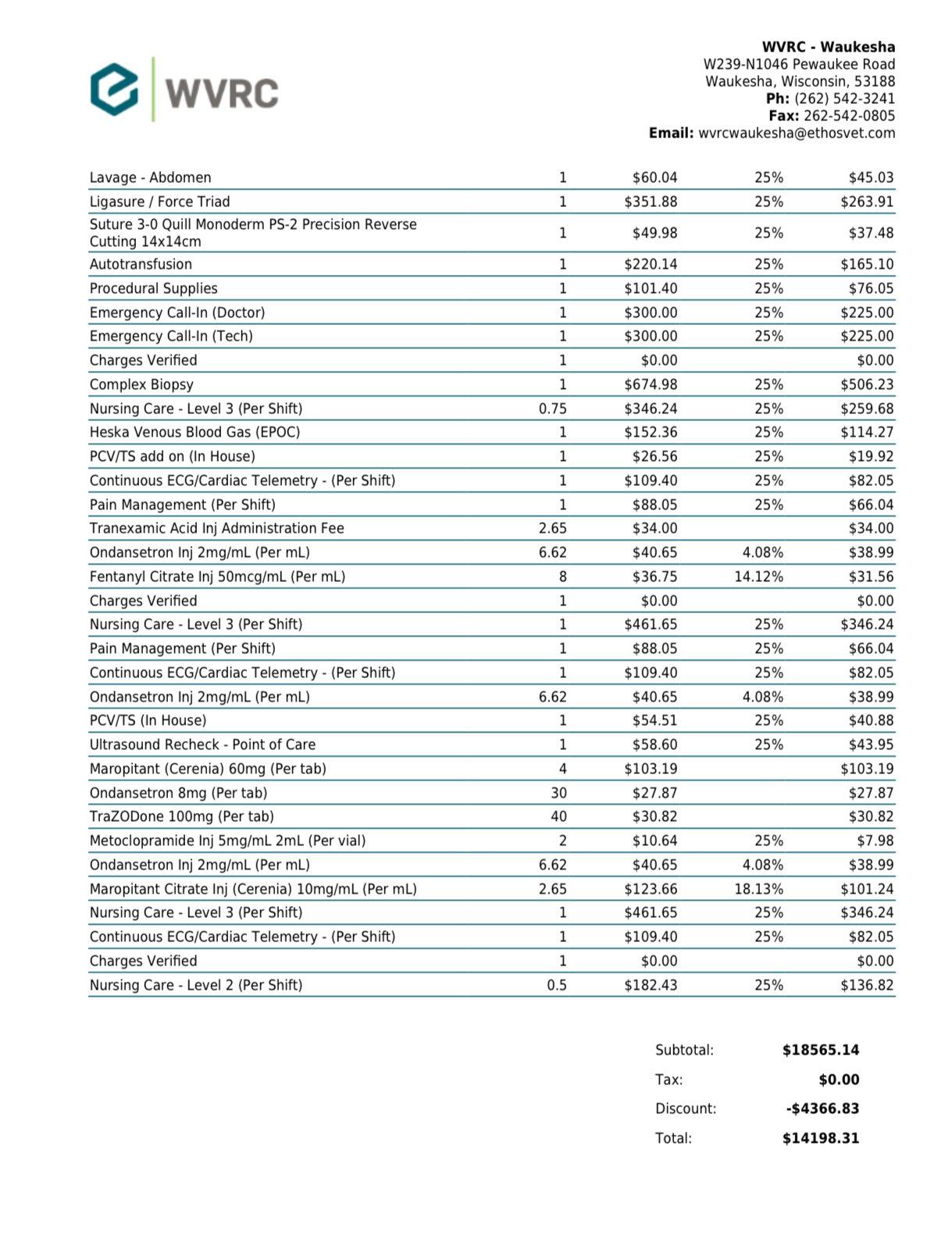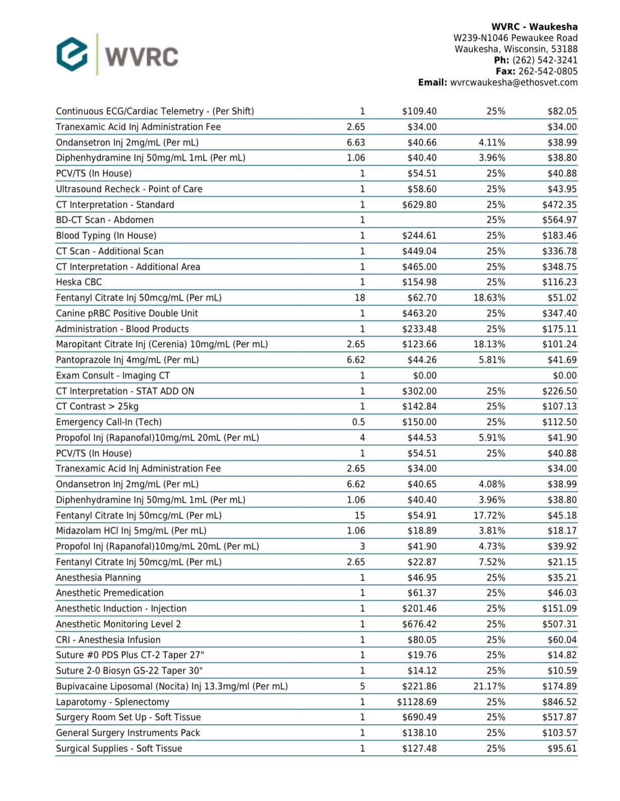 We are grateful for the veterinary offices for offering several discounts to our organization. Most recently, they've refunded us $1,000 for lab services. This isn't reflected in the invoices shown but we wanted to make sure we shared our thanks and appreciation. Every dollar counts!